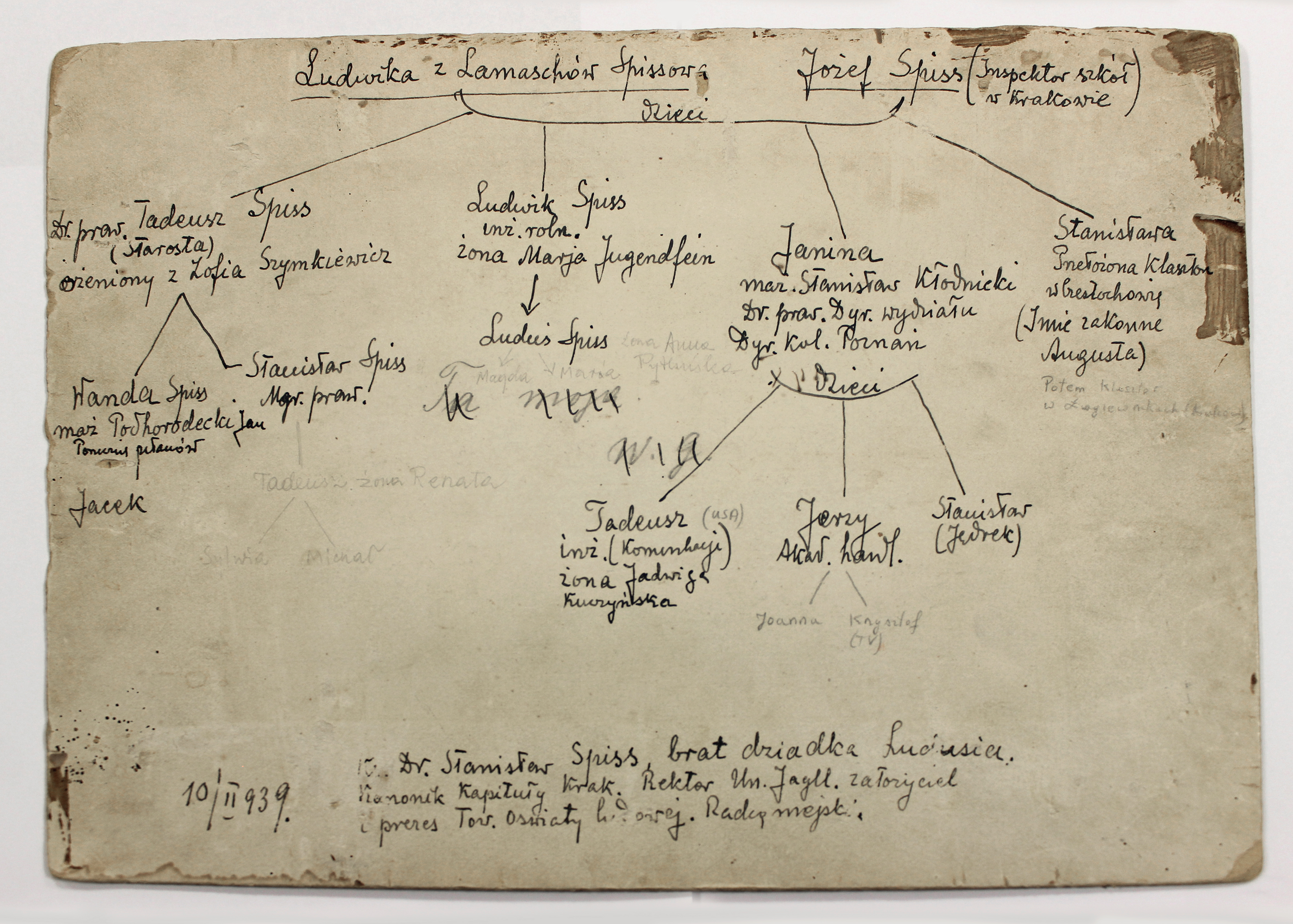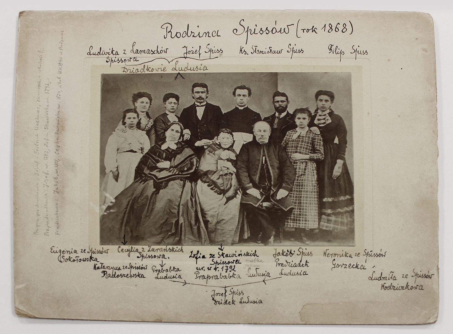 Zdjęcie rodziny Spissów z 1868 roku. Na odwrocie zdjęcia jest rozpisane drzewo genealogiczne klanu.